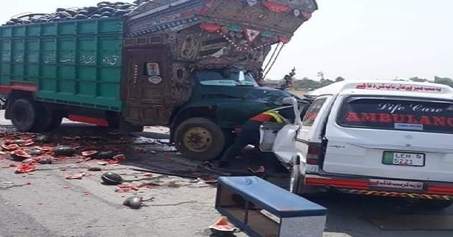 چیچہ وطنی کے رہائشی ڈلیوری کے کیس میں ڈی ایچ کیو ہسپتال میں آنا والا بدقسمت خاندان اولاد نارینہ حاصل کرنے کے بعد آج ہی ڈی ایچ کیو ہسپتال سے ڈسچارج ہو کر ایمولینس میں خوشی خوشی گھر جا رہے تھے کہ راستے میں ایمولینس کا ٹائر بلاسٹ ہونے سے دوسری سائیڈ سے آنے والے ٹرک سے ٹکرا گئی اور موقع پر شیر خوار بچے سمیت 4افراد جانبحق ہو گئے? جابحق افراد کی میتوں کو ریسکیو1122 اور ایدھی ایمولینس نے ڈی ایچ کیو ہسپتال ساہیوال منتقل کر دیا ہے پولیس نے موقع پر پہنچ کر کاروائی شروع کر دی