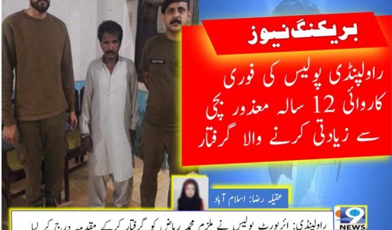 راولپنڈی: ائرپورٹ پولیس کی فوری کاروائی، 12 سالہ معذور بچی سے زیادتی کرنے والا درندہ صفت ملزم گرفتار.
