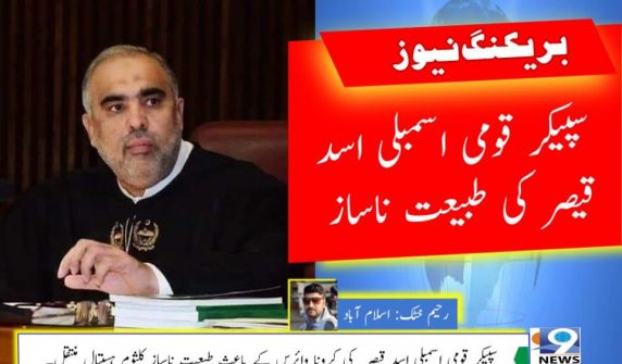 سپیکر قومی اسمبلی اسد قیصر صاحب کی طبعیت ناساز