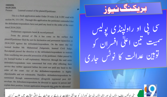 راولپنڈی پولیس کے اعلیٰ افسران کو توہین عدالت کا نوٹس جاری…!