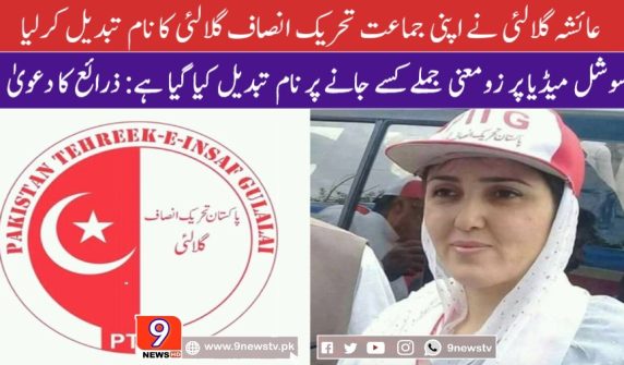 عائشہ گلالئی نے اپنی جماعت تحریک انصاف گلالئی کا نام تبدیل کرلیا
