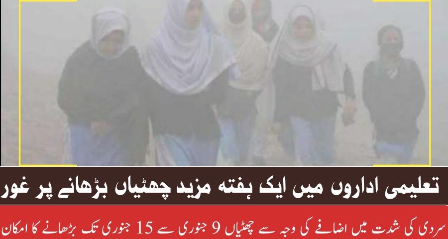سردی کی شدت میں اضافے کی وجہ سے تعلیمی اداروں میں میں ایک ہفتہ مزید چھٹیاں بڑھانے پر غور کیا جا رہا ہے۔