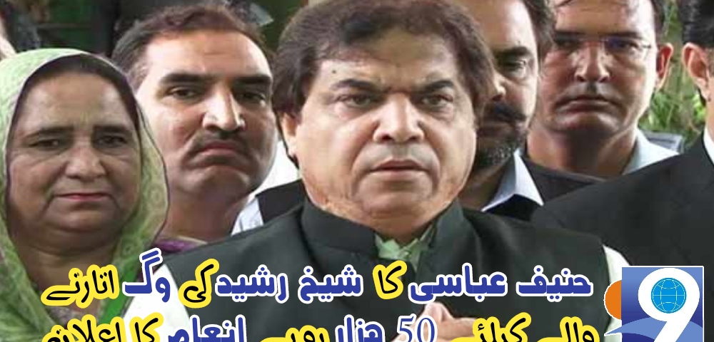 وزیراعظم کے معاون خصوصی حنیف عباسی نے شیخ رشید کی وگ اتارنے والے کو 50 ہزار روپے انعام دینے کا اعلان کردیا ہے۔