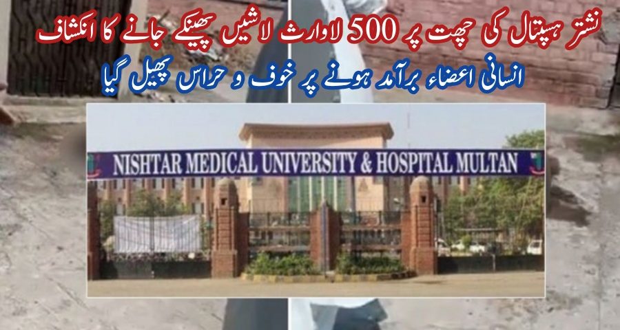 تفصیلات کے مطابق نشتر ہسپتال کے ڈیڈ لائوس کی چھت سے 5 سو سے زائد لاوارث انسانی لاشوں کی باقیات برآمد ہوئی ہیں جس کے بعد میں ہسپتال میں شدید خوف وہراس پھیل گیا۔ سنگین غفلت کی نشاندہی چوہدری زمان گجر مشیروزیراعلیٰ پنجاب نے ہسپتال کے دورے کے دوران کی تھی جس کے بعد ہسپتال انتظامیہ نے تحقیقات شروع کر دی ہیں۔