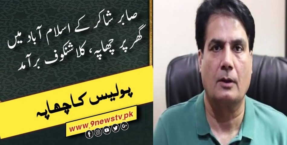 آبپارہ پولیس نے صابر شاکر کی رہائش گاہ ایف سیون فور میں چھاپہ مارا تو ان کے رہائشی کمرے کی الماری سے کلاشنکوف برآمد ہوئی۔