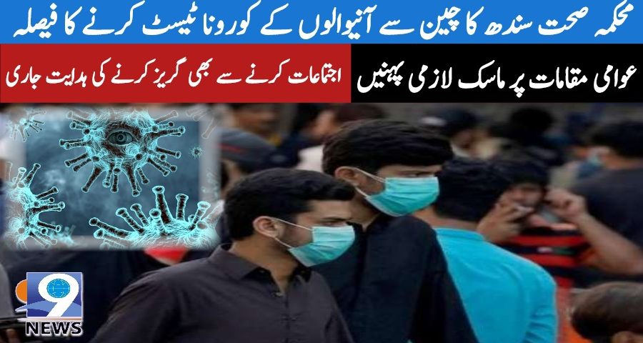 محکمہ صحت سندھ کا چین سے آنیوالوں کے کورونا ٹیسٹ کرنے کا فیصلہ
